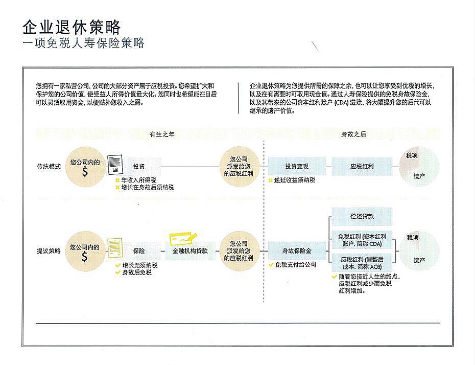 如果您有一家私营企业,公司的大部分资产属于应税投资,您希望扩大和保护您的公司价值,使受益人所得价值最大化,同时您也希望能在日后可以灵活取用资金,以便补贴您收入之需。