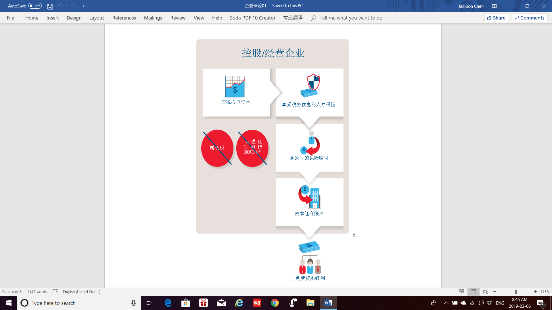 • 减低公司的年度税款。假如您的企业有应税投资,您可将部分资金转到分红保险中。保单内的资金免税增长,而不会增加您公司每年的税款。