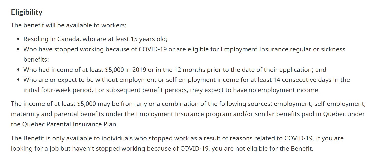 该福利仅适用于因为新冠COVID-19引起的无法工作的个人。如果您仍然在工作,则您没有资格享受此福利。