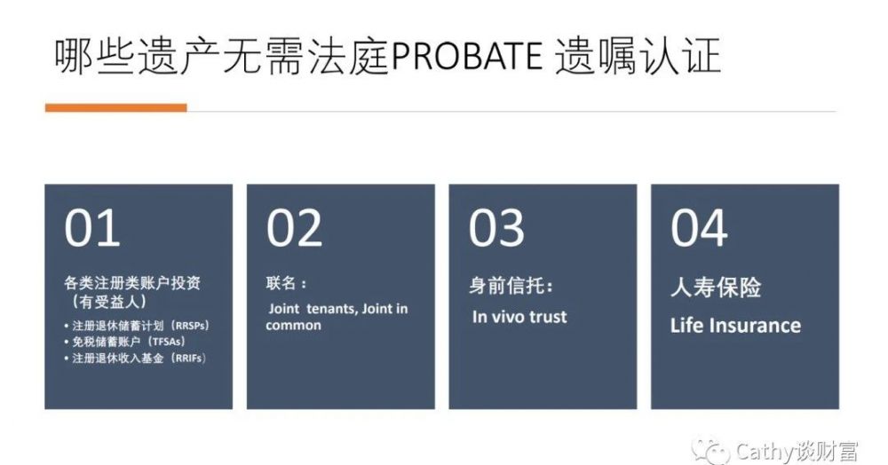 Probate 遗嘱认证费用:在安省,前5万元按照0.5%收取,超过5万元的部分,将按照1.5%收取,高资产人士的遗嘱认证费也是一笔不小的数字,这部分资金需要提前规划。